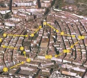 Toda la ciudad estaba rodeada por una extensa muralla de piedra que hoy en día puede verse en la zona sur de la parte vieja. Junto con la muralla se construyeron cuatro torres-iglesias de carácter defensivo. El recorrido que planteamos abarca la visita de los edificios, monumentos y plazas más emblemáticas de la ciudad.